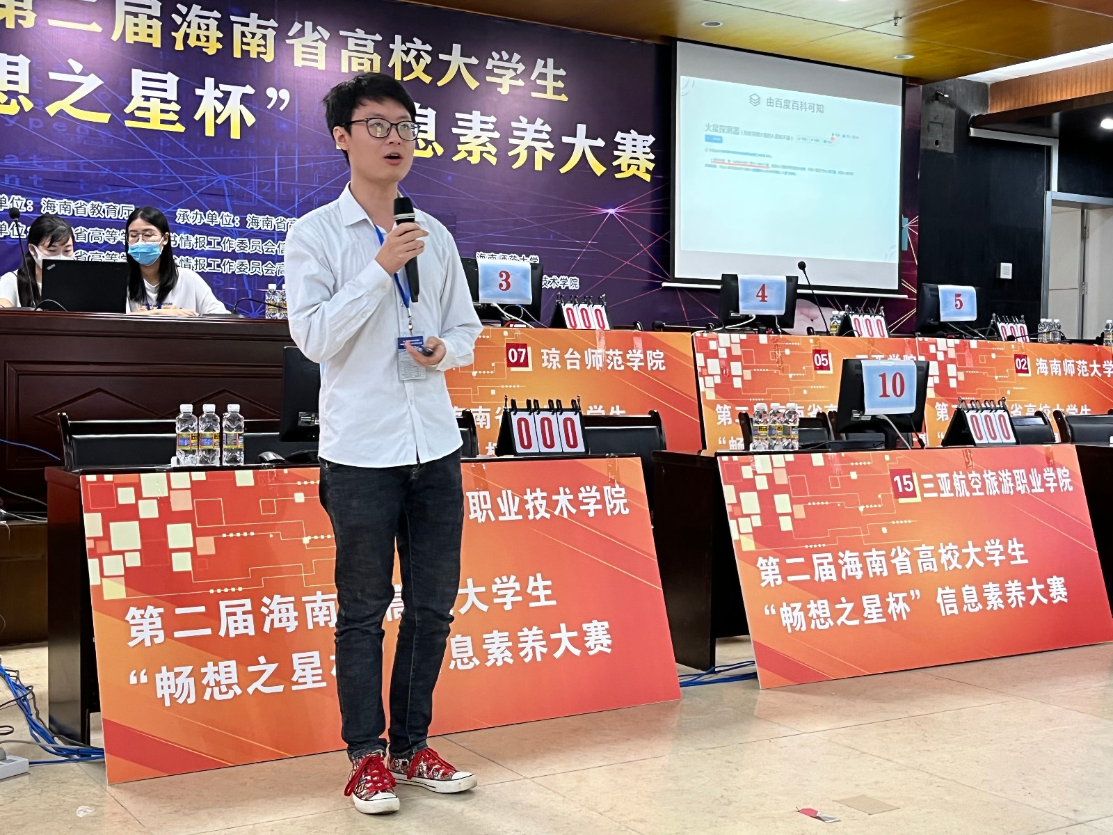 2021年10月29-30日,第二届海南省高校大学生“畅想之星杯”信息素养大赛总决赛在海南师范大学图书馆隆重举行。本次大赛由海南省教育厅主办,海南省高等学校图书情报工作委员会承办。来自全省18所高校33支队伍99名决赛选手在两天四个环节的赛程里奉献了一场惊心动魄的精彩比赛。