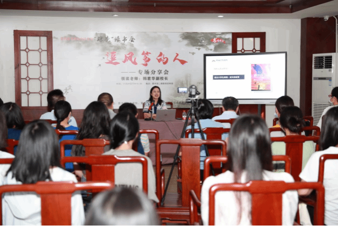本次读书分享会,韩校长领读经典著作《追风筝的人》。韩校长首先介绍了《追风筝的人》的写作背景、简要情节以及故事发生的时代背景,同时结合个人的阅读心得和丰富的人生经历真挚的分享了对于战争、教育、亲情、友情与爱情的真实感悟,讲到动情之处,韩校长眼眶湿润,现场听众也被深深打动,产生强烈共鸣。