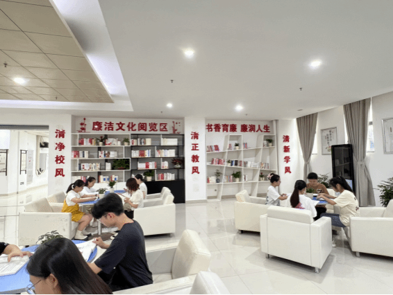 走进廉洁文化阅览区,“清净校风”、“清正教风”、“清新学风”等廉洁警句和清新的绿植辉映成趣,成为图书馆一道风景线。在廉洁文化图书专架上,陈列着廉政教育、师德师风等400余册涉及廉洁文化教育的书籍,构建起集展览、阅读、交流为一体的廉洁文化阅览区,全校师生可以根据个人兴趣选读和交流互动。