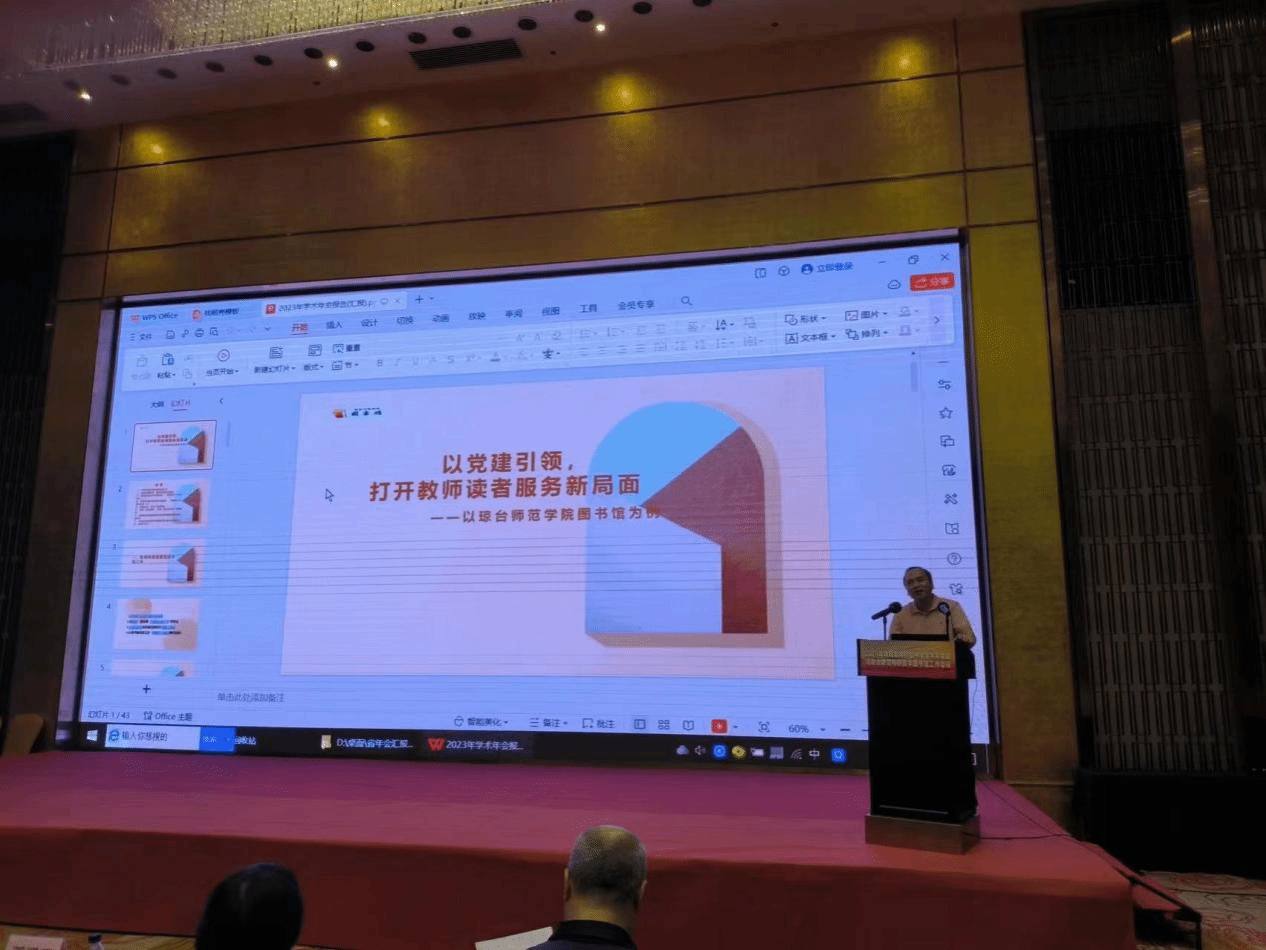 11月2日,2023年海南省高校图书馆学术年会在海南省临高县举办。图书馆馆长符方健带队参加会议,并受邀作“以党建为引领,打开教师为读者服务新局面”的主题报告。