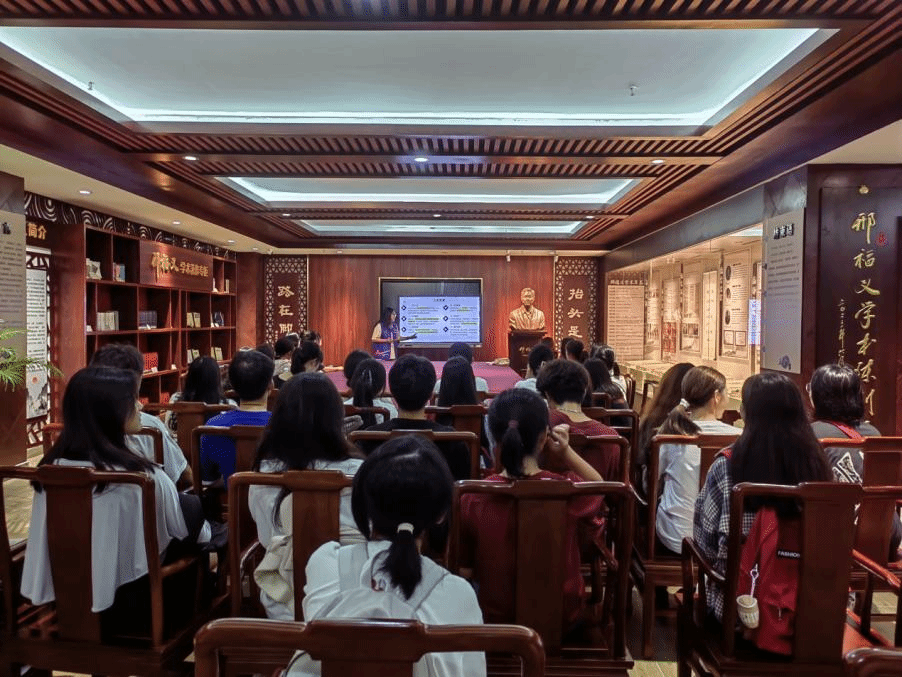 在现场参观学习阶段,新生以班级为单位,到图书馆实地参观。现场了解了图书馆文献资源、空间分布、入馆须知;学习如何查找和借阅图书,并现场借阅图书;重点参观了邢福义学术陈列室,学习邢福义先生学术精神。