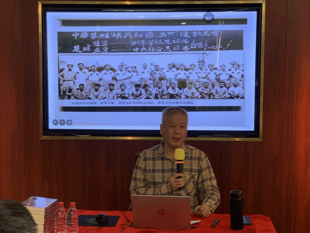 本期读书会,张品成老师领读其最新创作的红军题材小说《最后的比分》。张老师首先向大家强调了阅读的重要性,介绍了他青少年时期,在非常困难的情况下,坚持阅读,从中受益,最终成长为著名作家的心路历程。而后,张老师介绍了《最后的比分》的创作背景和故事情节,《最后的比分》讲述了上个世纪三十年代苏区举办的一场特殊的足球赛,不同阶级、不同立场的角色通过这场足球赛走到了一起。在艰苦的革命岁月中,红军指战员通过一场足球赛,感化了俘虏、争取了人心、赢得了民心、凝聚了精神,取得了最终的胜利。这部小说,用独特的视角、鲜活的人物、生动的情节歌颂了乐观、英勇、不屈不挠的红军精神。张老师从《最后的比分》出发为师生介绍了很多优秀的红色文艺作品,并以其广博的学识和丰富的创作经验分享了很多文学和电影创作上的宝贵心得,为我校学子的阅读和文学创作做出了有益的指导。现场气氛热烈,交流踊跃。