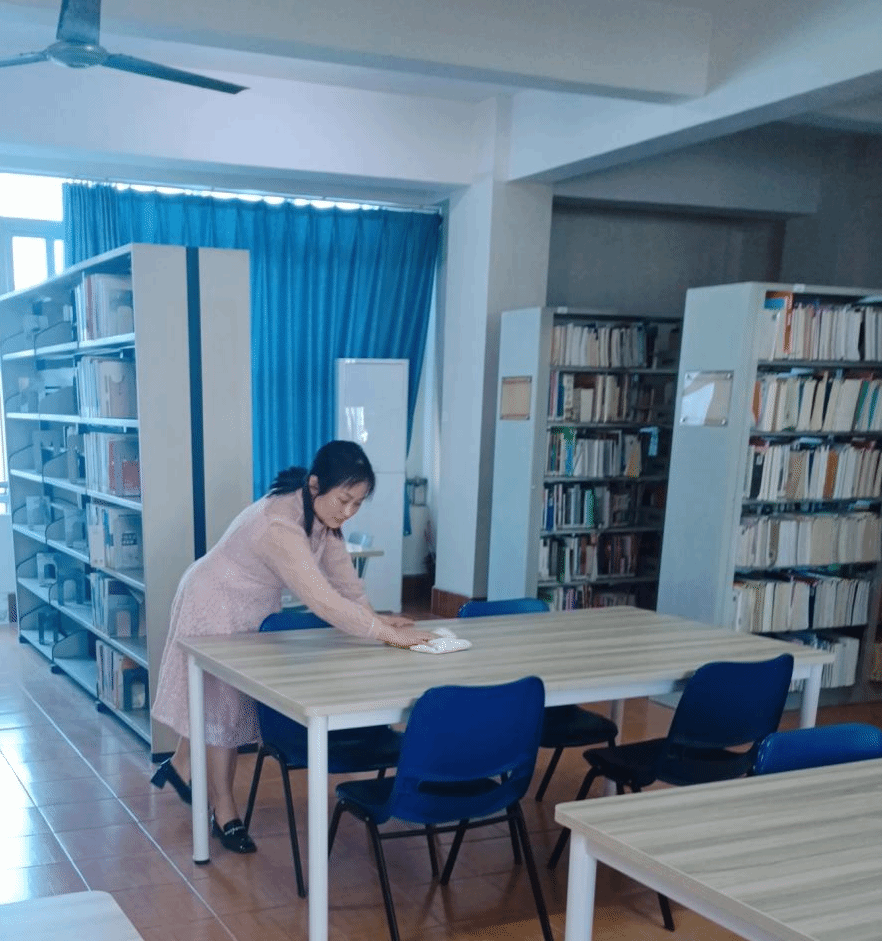 图书馆制定专项行动计划,以部室为单位,区域责任分工进行大扫除——地板、门窗、桌椅、书架、饮水机、空调等都进行清扫、擦洗、消杀;绿植也进行了修剪灌溉,在全体馆员满腔热情地协同合作下,图书馆面貌焕然一新。