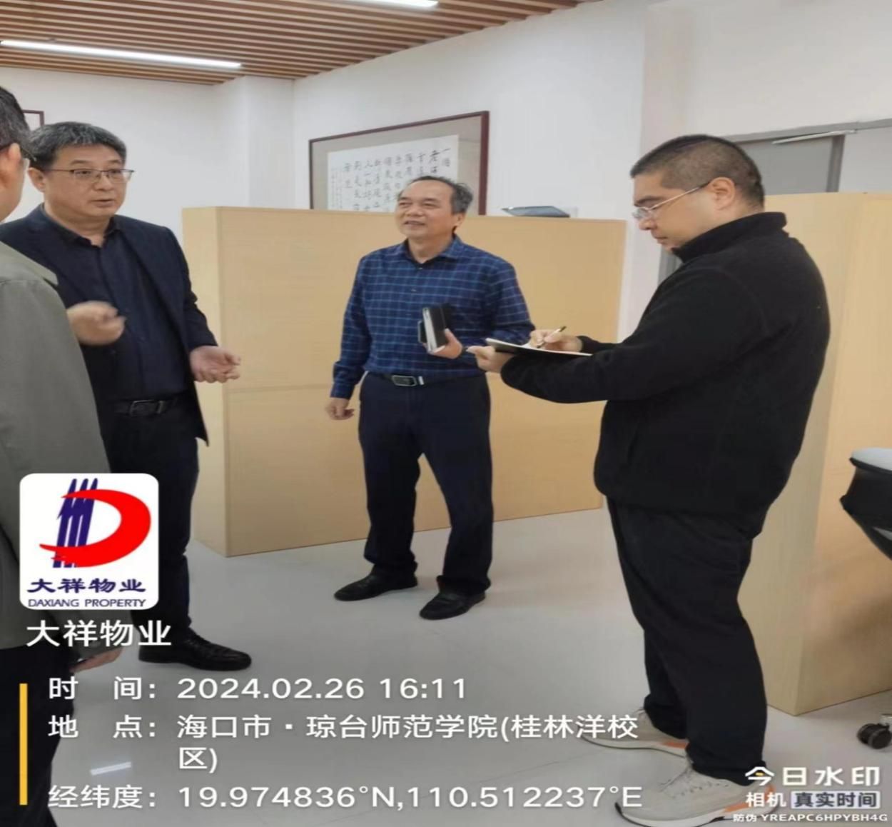 新学期伊始,为彻底整治校园突出风险隐患,防范和遏制火灾等事故发生,2024年2月26日下午,王安兴副校长带领保卫处、后勤基建处等部门领导一起到图书馆进行消防安全检查工作,馆长符方健携同图书馆和物业公司等相关工作人员参与检查工作。检查组重点检查了图书馆消防设备设施、顶楼渗水、吊顶脱落、墙皮脱落等问题。王安兴副校长听取了图书馆汇报,并现场做出指示,提请相关部门一一落实,推动整改,确保落实安全工作。