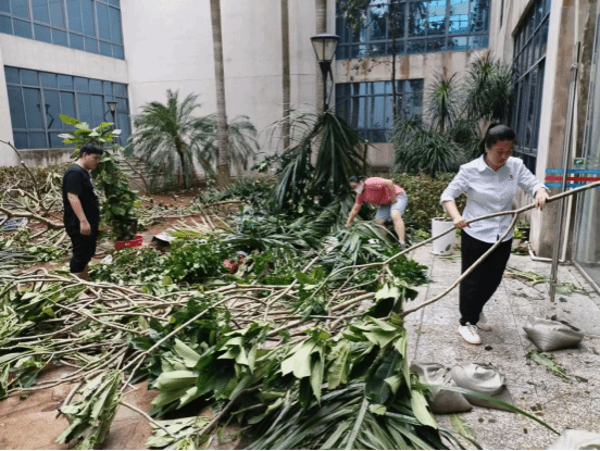 今年超强台风“摩羯”过境海口,9月6日夜间离开我省并在湛江登陆。台风一过,图书馆领导立刻组织工作人员开始清理台风垃圾、开展道路障碍和树木的清理工作,为早日恢复开馆做准备。