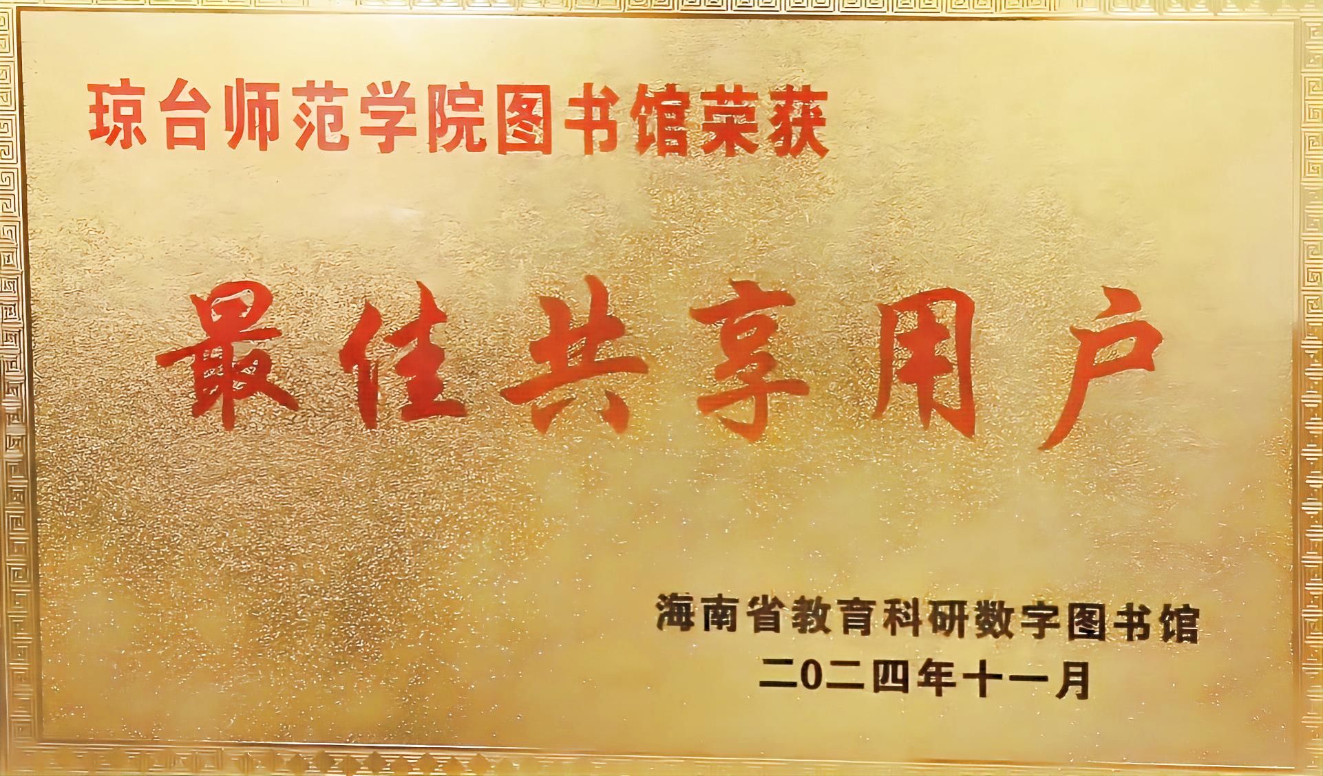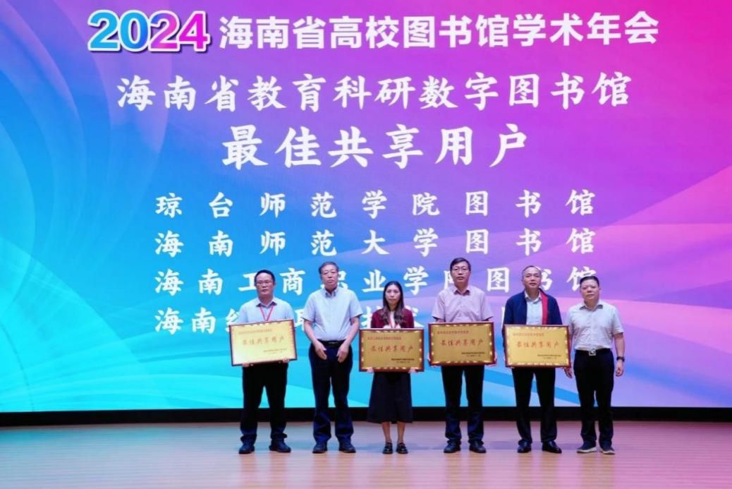 11月22日,由海南省高等学校图书情报工作委员会、海南省教育科研数字图书馆主办的2024年海南省高校图书馆学术年会,在海南陵水黎安国际教育创新试验区成功举行。我校图书馆荣获2024年海南省教育科研数字图书馆“最佳共享用户”称号。这一年我们通过新生入馆教育、数字资源培训讲座、读者宣传手册等形式向全校师生宣传推广海南省教育科研数字图书馆,成效显著,使用量居全省高校前列,这份荣誉是对我们一年来工作的最好肯定。