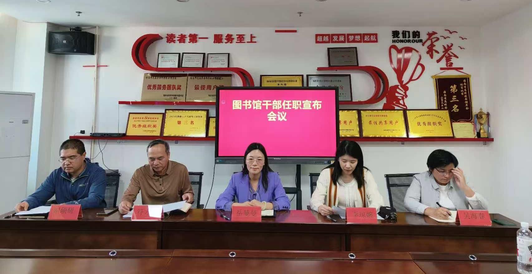 11月28日下午,图书馆召开干部任职宣布大会——宣布副馆长任职。校党委委员、副校长岳曼曼,组织部副部长李琼婉出席会议,会议由符方健馆长主持,图书馆全体馆员参加会议。