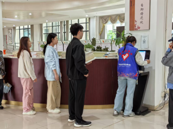 最后,新生通过手机搜索图书,穿梭于书香四溢的书架间,每人手捧书籍前往自助借还机操作借阅图书。