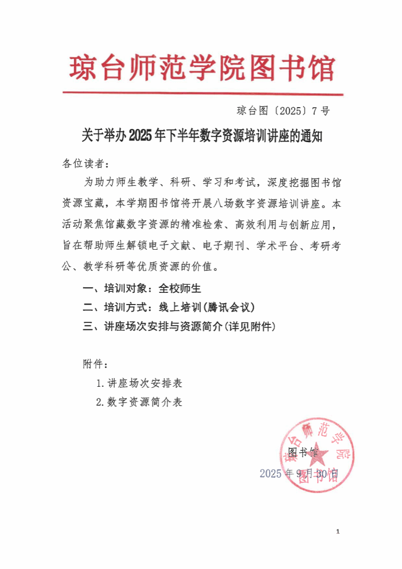 图书馆关于举办2025年下半年数字资源培训讲座的通知