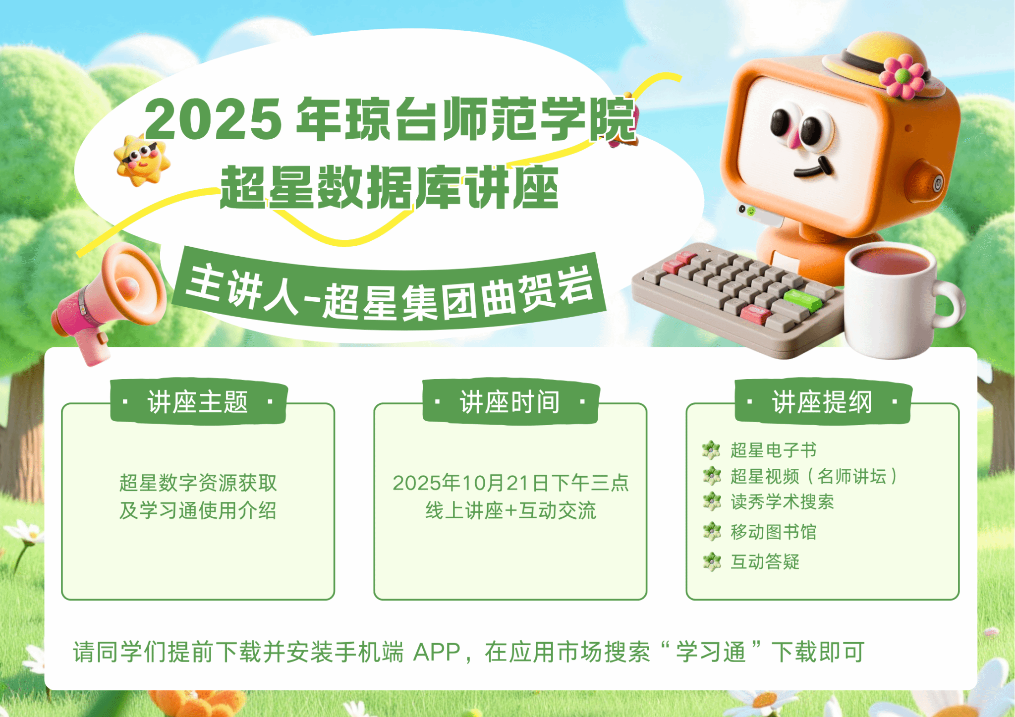 为构建更加高效、便捷、智能的学习科研环境,图书馆特举办本次超星资源培训讲座,具体安排如下: